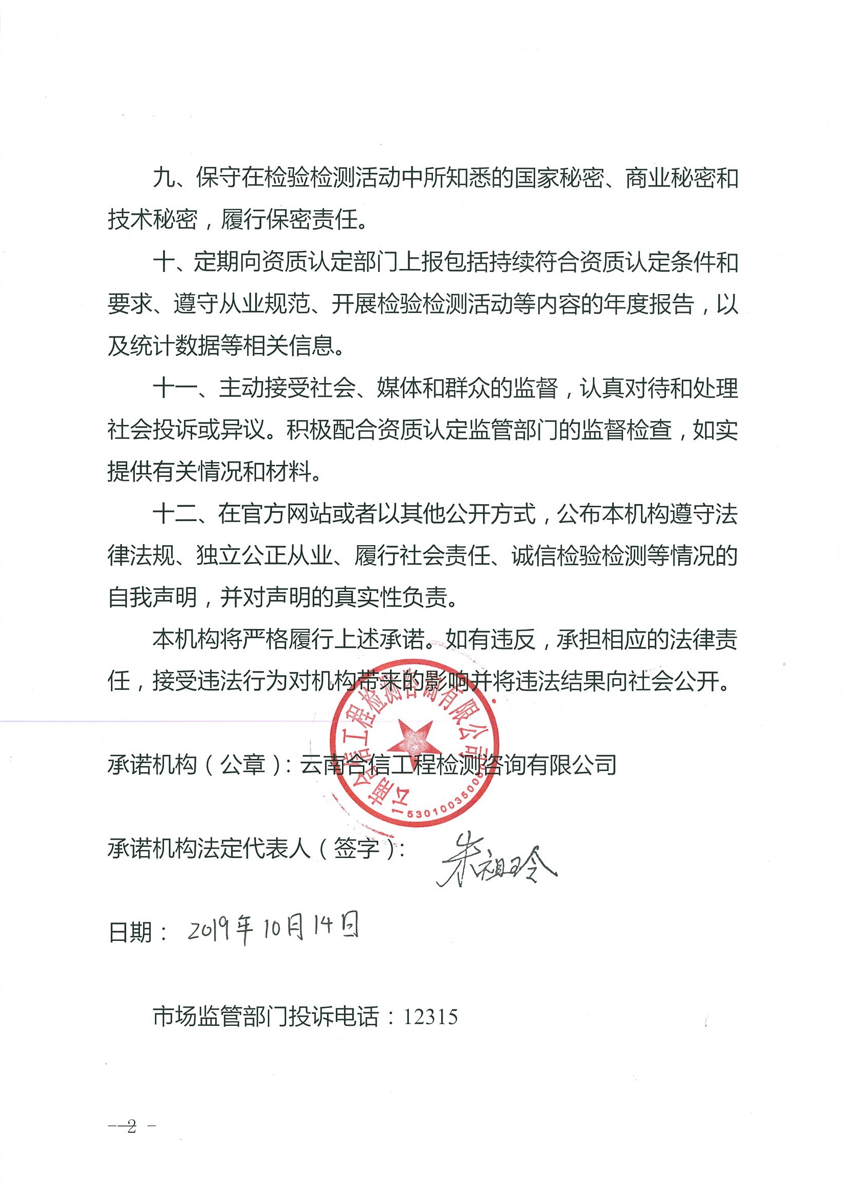 云南省檢驗(yàn)檢測機(jī)構(gòu)質(zhì)量誠信承諾書