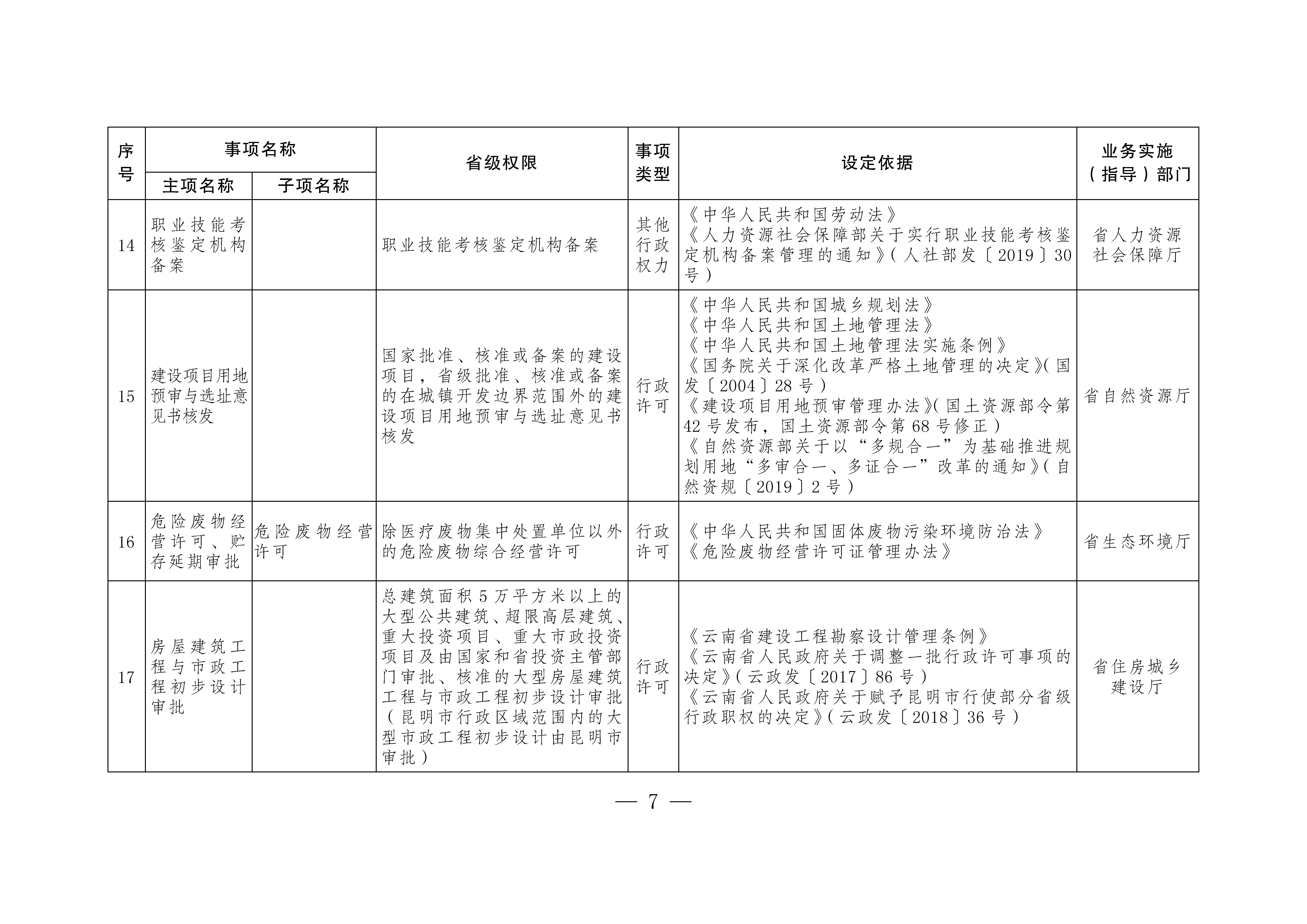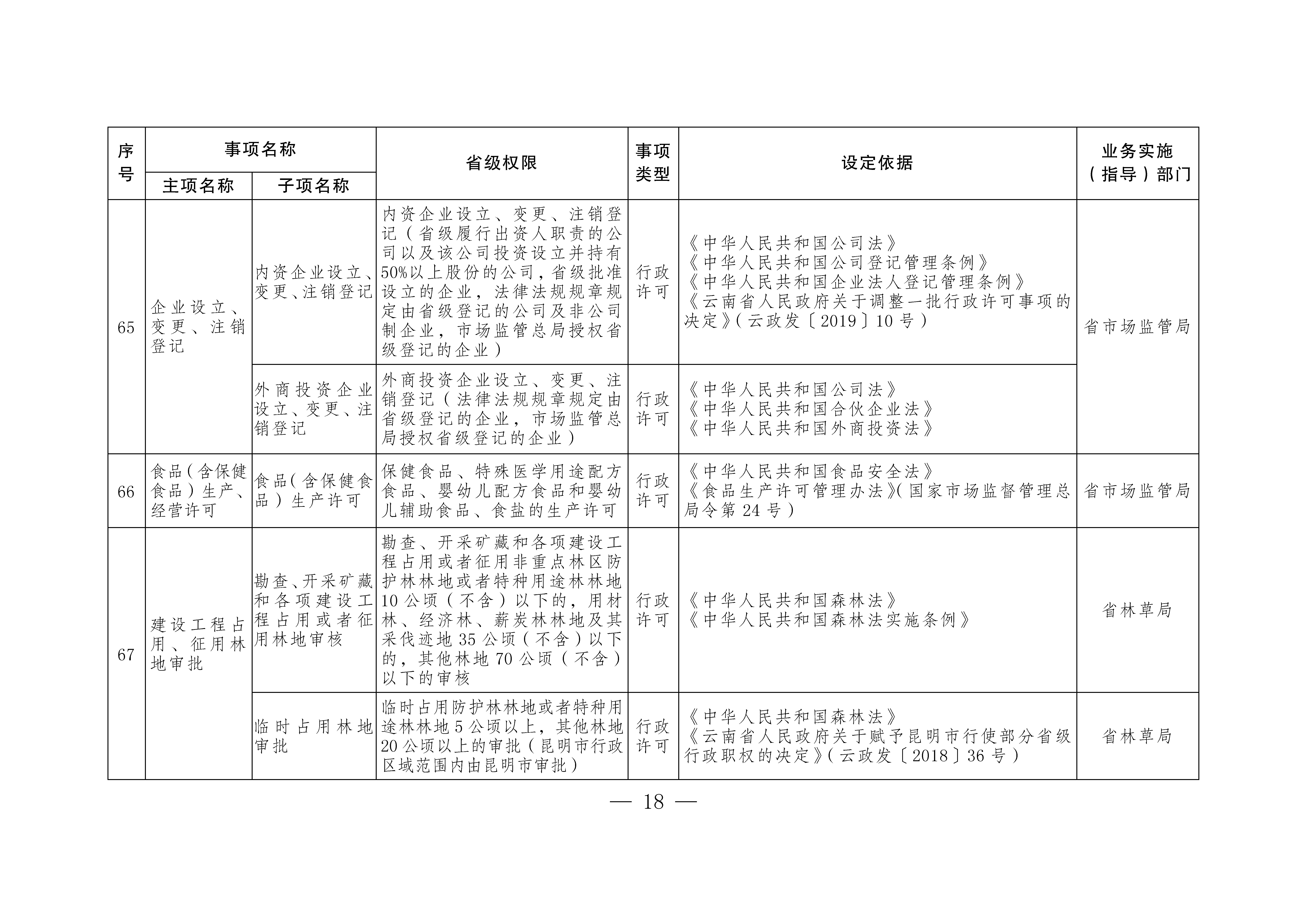 按照《國務(wù)院關(guān)于印發(fā)6個(gè)新設(shè)自由貿(mào)易試驗(yàn)區(qū)總體方案的通知》(國發(fā)〔2019〕16號(hào))和《國務(wù)院關(guān)于同意新設(shè)6個(gè)自由貿(mào)易試驗(yàn)區(qū)的批復(fù)》(國函〔2019〕72號(hào))精神,省人民政府研究決定,向中國(云南)自由貿(mào)易試驗(yàn)區(qū)(以下簡(jiǎn)稱云南自貿(mào)試驗(yàn)區(qū))昆明、紅河、德宏片區(qū)管委會(huì)下放第一批省級(jí)行政權(quán)力事項(xiàng)73項(xiàng),其中行政許可事項(xiàng)55項(xiàng),行政確認(rèn)事項(xiàng)2項(xiàng),其他行政權(quán)力事項(xiàng)16項(xiàng)。