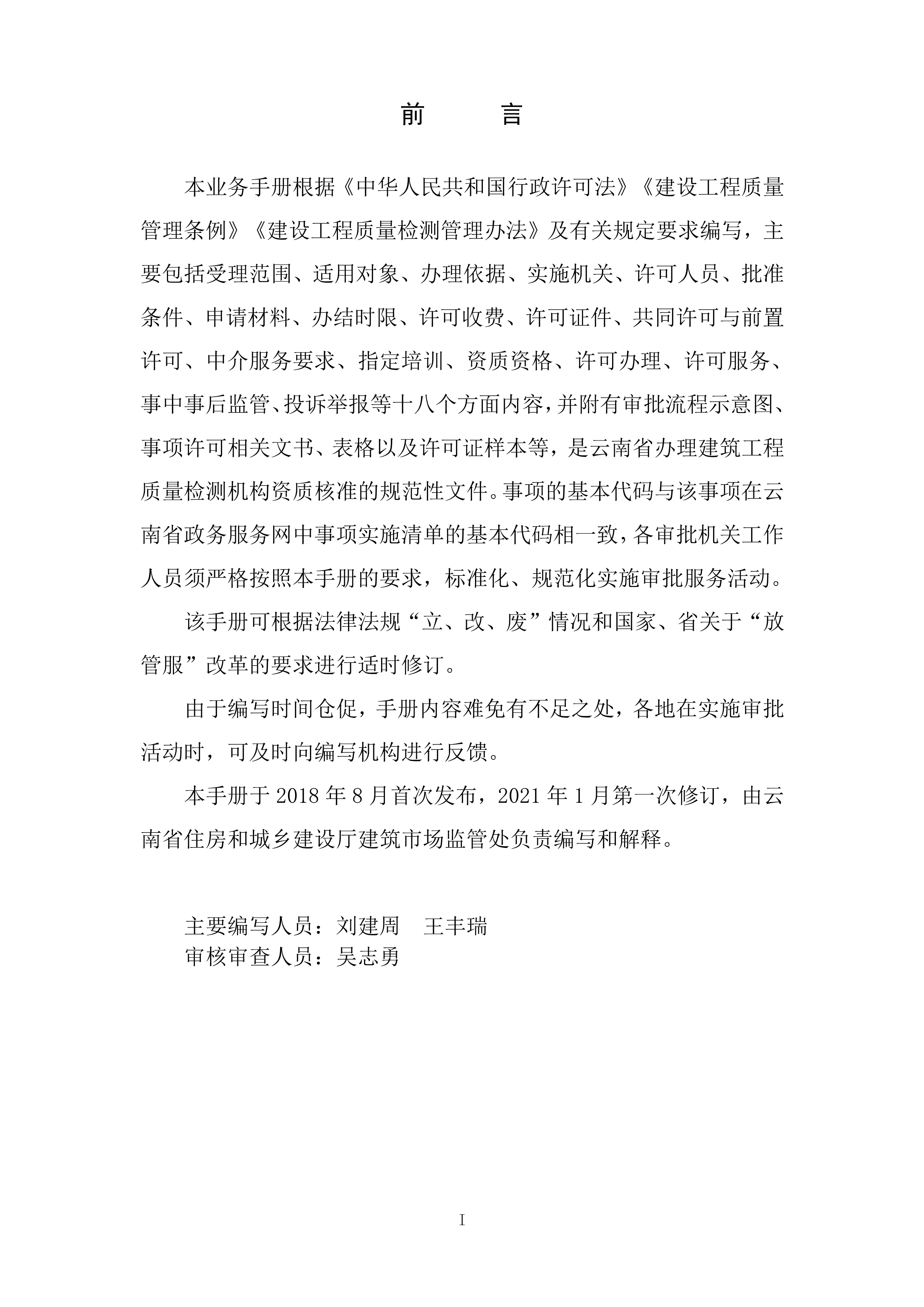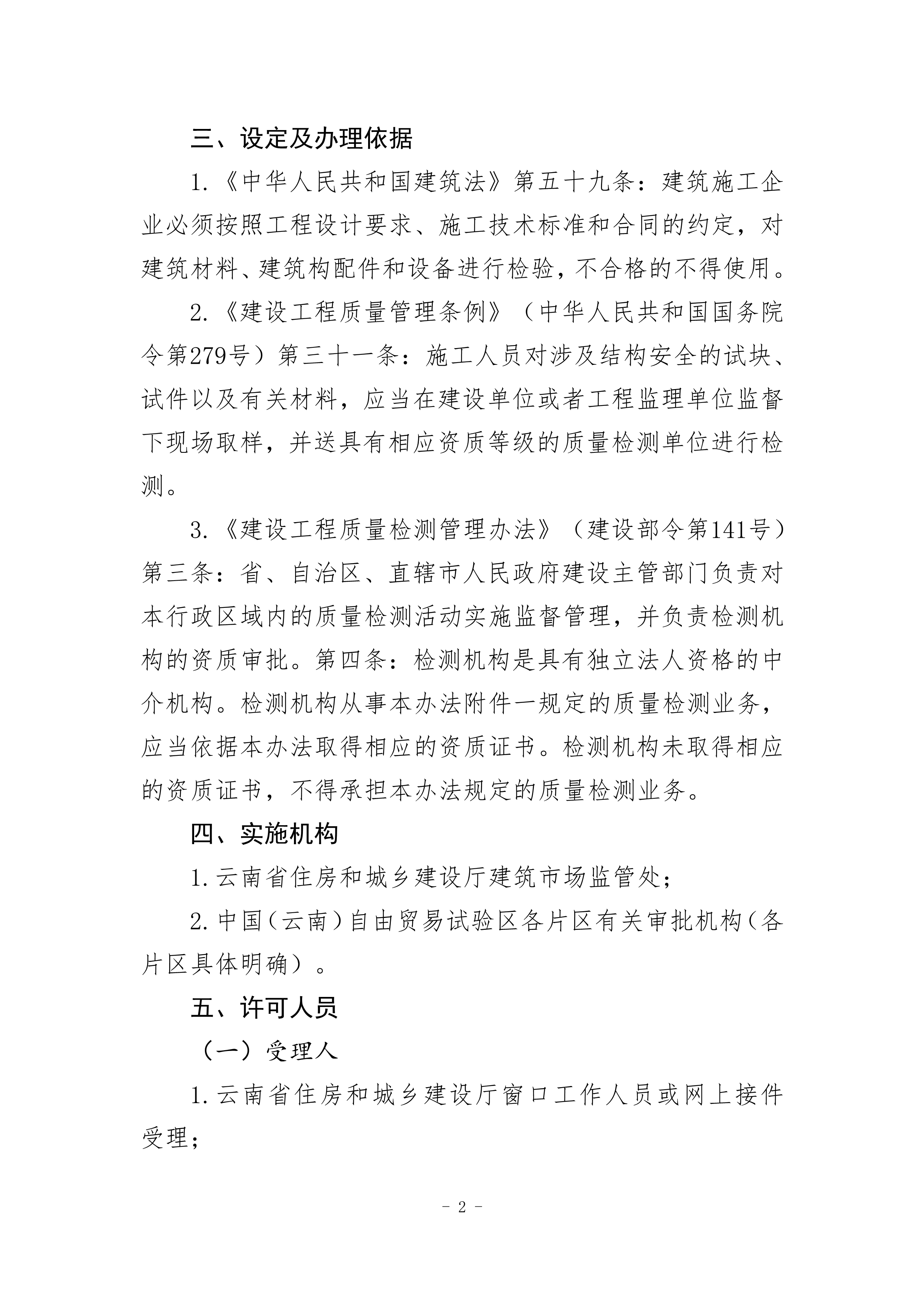 根據(jù)《云南省人民政府關于調整482項涉及省級行政權力事項的決定的通知》(云政發(fā)〔2020〕16 號)、《云南省人民政府關于調整112項涉及州級及以下行政權力事項的決定》(云政發(fā)〔2020〕21號)、《云南省人民政府辦公廳關于公布云南省省級政務服務事項(2020年版) 的通知》(云政辦發(fā)〔2020〕39 號)、《云南省人民政府關于向中國(云南)自由貿易試驗區(qū)各片區(qū)管委會下放第一批省級管理權限的決定》(云政發(fā)〔2020〕34號)等文件精神,省住房城鄉(xiāng)建設廳于2021年1月20日對涉及省級下放自貿區(qū)各片區(qū)的“建筑施工企業(yè)安全生產(chǎn)許可證核發(fā)”等9項政務服務事項辦事指南和業(yè)務手冊進行了編寫或修訂,現(xiàn)將“建設工程質量檢測機構資質核準業(yè)務手冊和辦事指南(完整版)”發(fā)布如下: