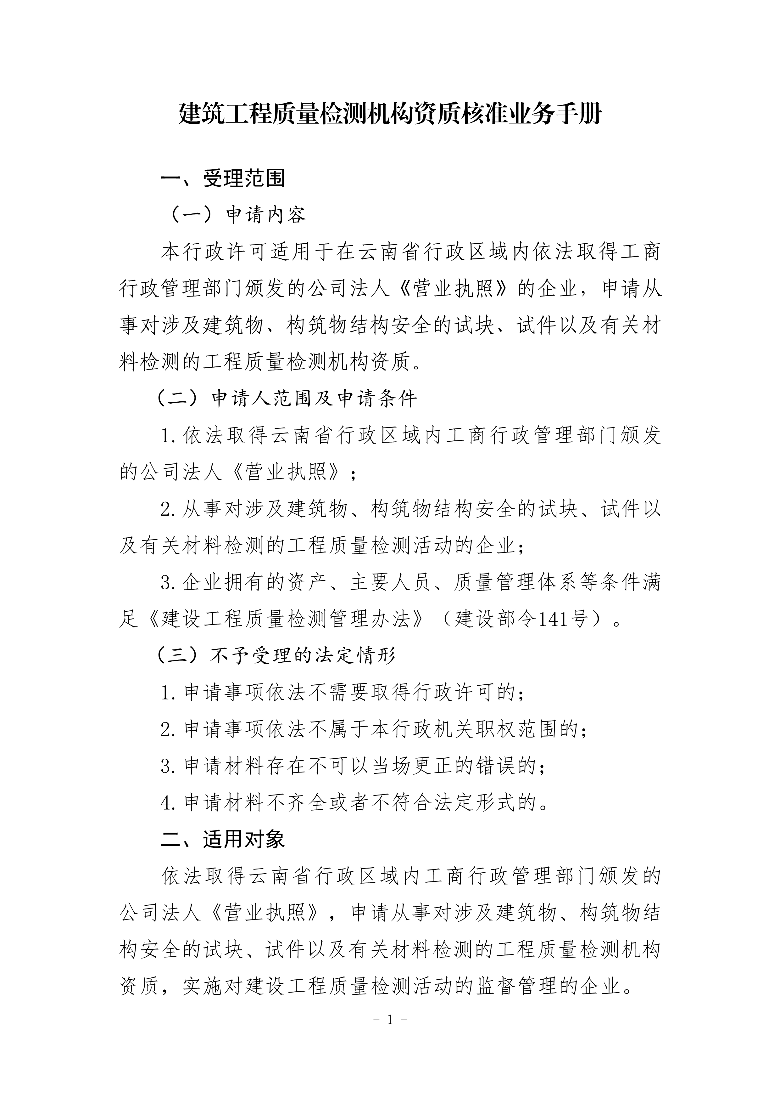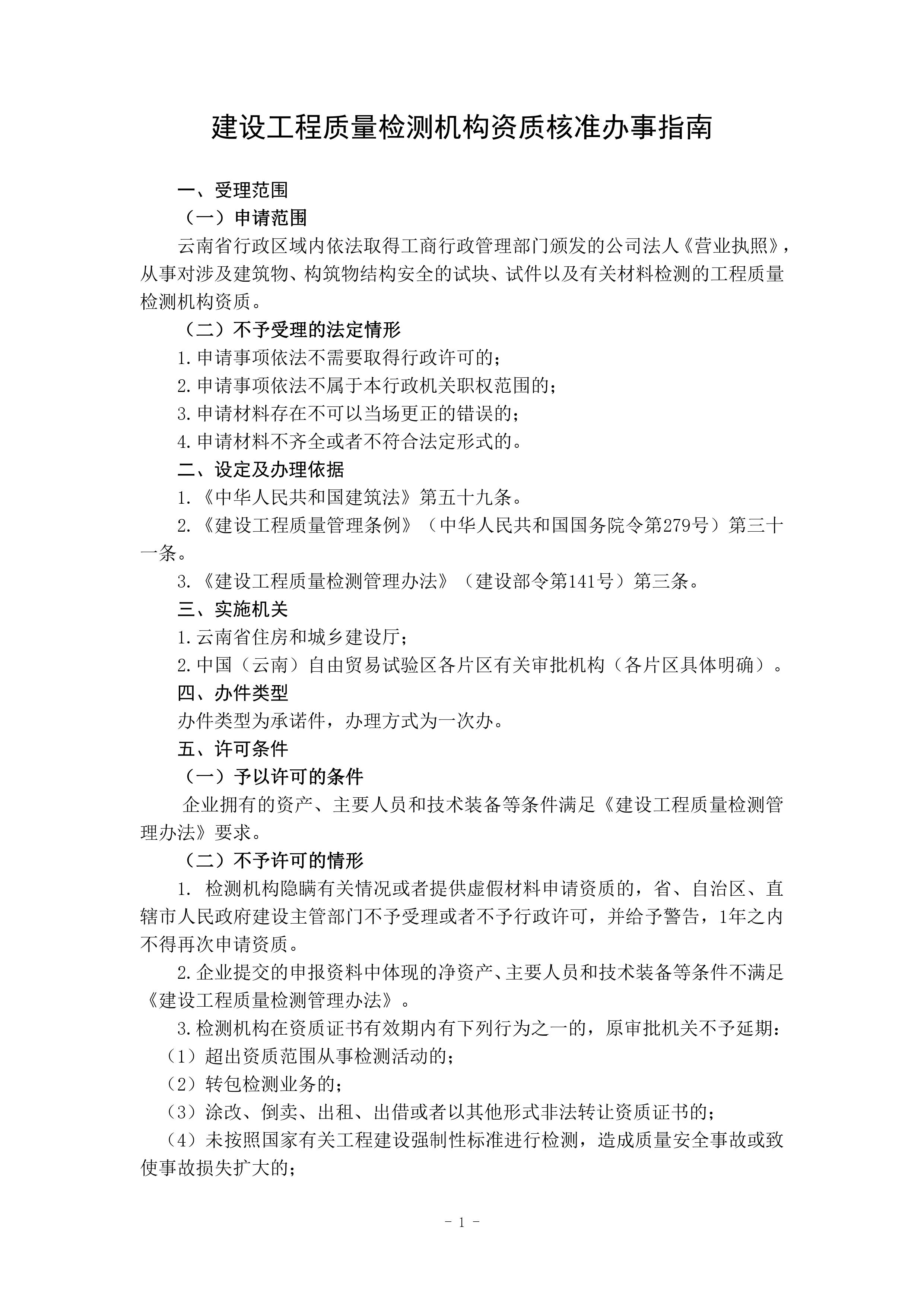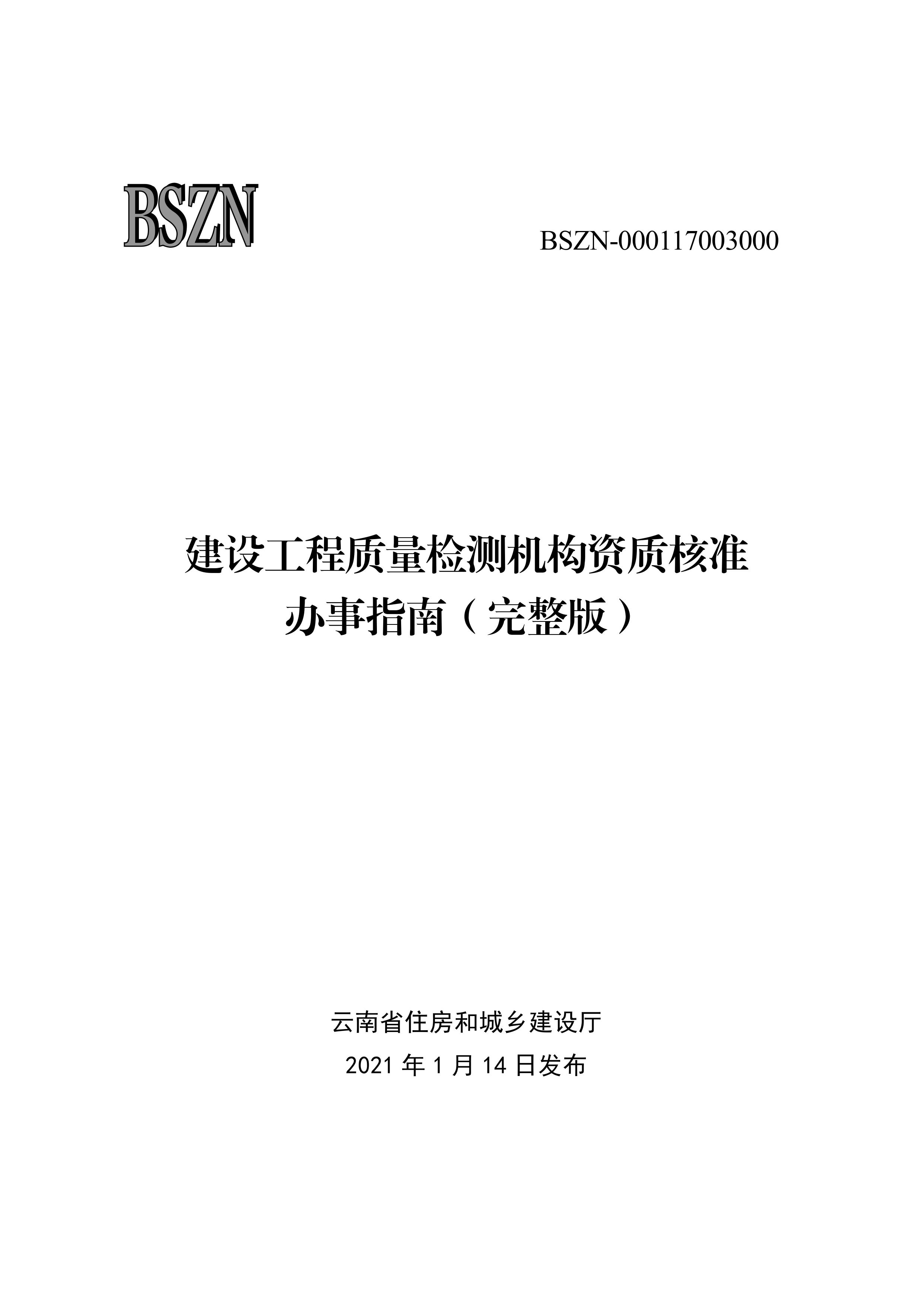 云南省住房和城鄉(xiāng)建設廳關于發(fā)布“建設工程質量檢測機構資質核準業(yè)務手冊和辦事指南(完整版)”