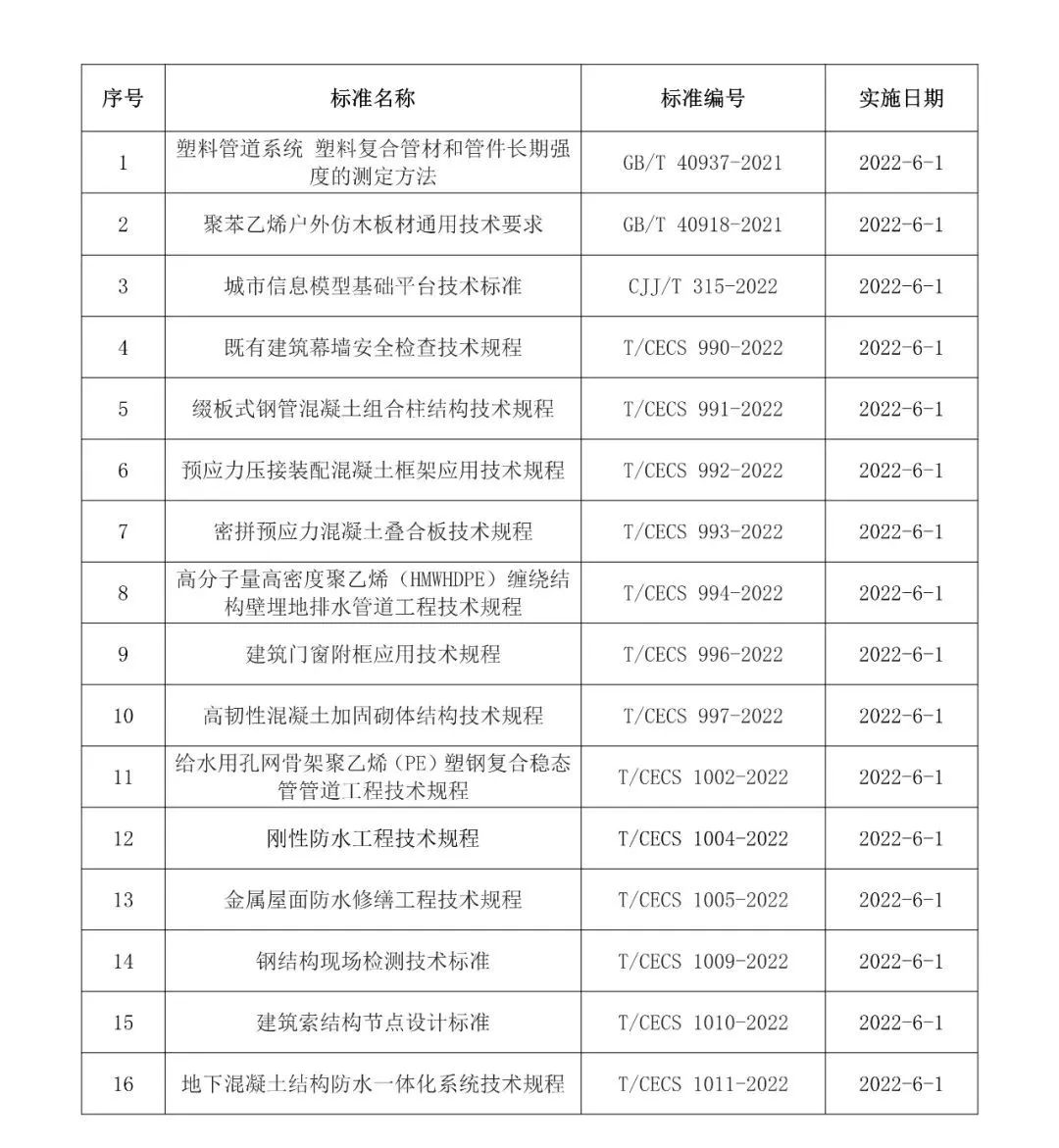 2022年6月開始實施的工程建設(shè)標(biāo)準(zhǔn)