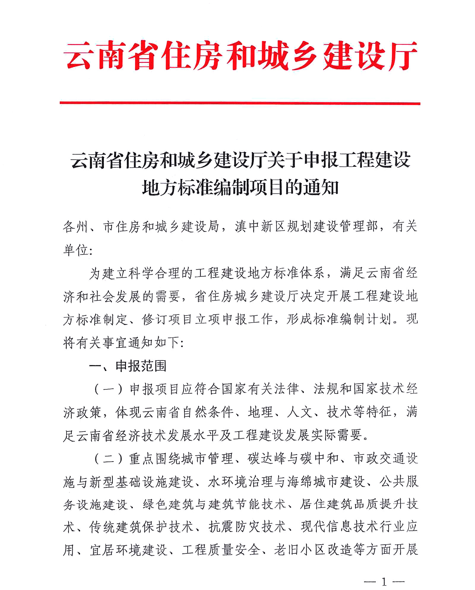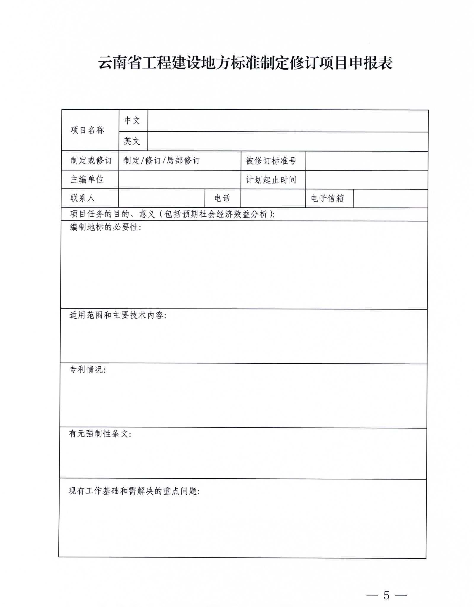 云南省住房和城鄉(xiāng)建設(shè)廳關(guān)于申報(bào)工程建設(shè)地方標(biāo)準(zhǔn)編制項(xiàng)目的通知