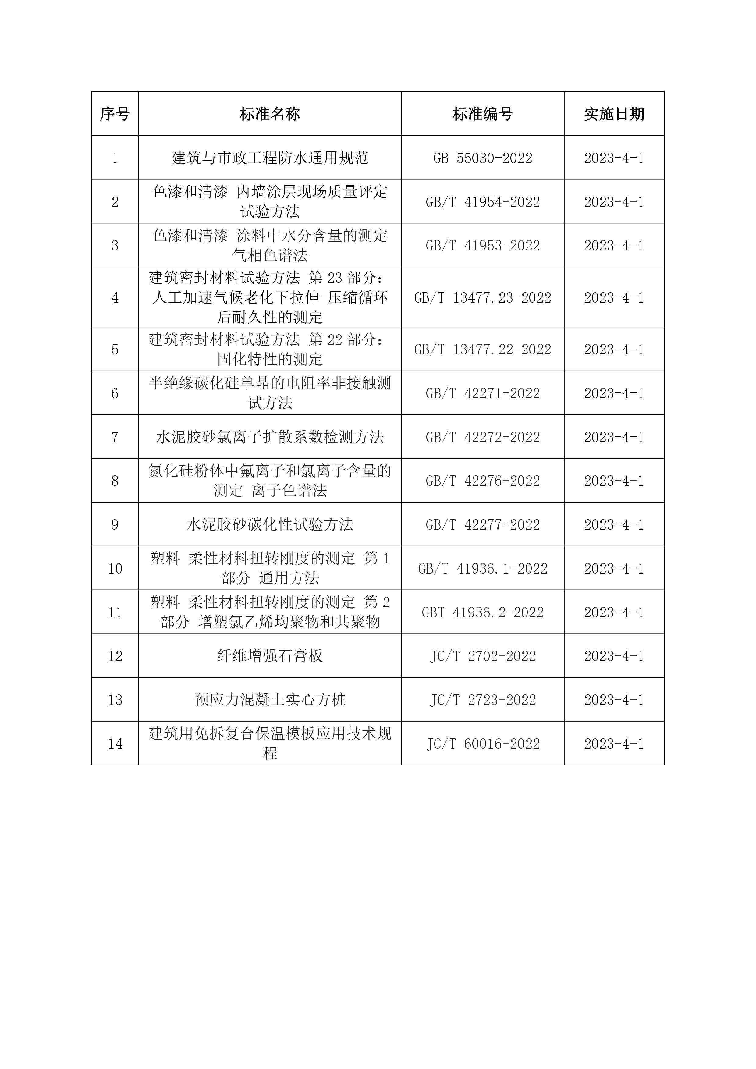2023年4月開始實施的工程建設(shè)標(biāo)準(zhǔn)