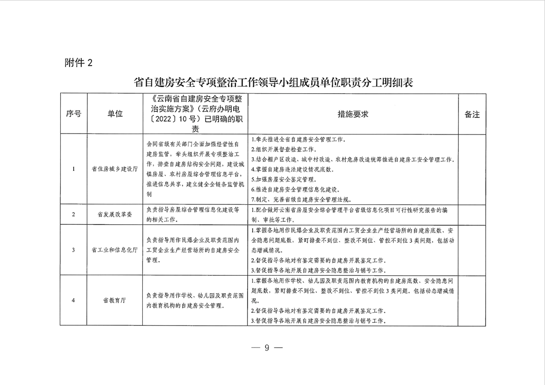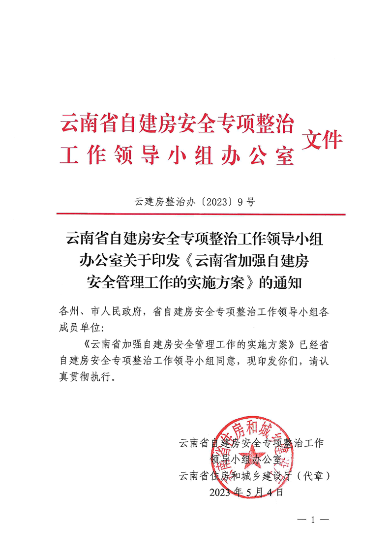 云南省自建房安全專項整治工作領導小組辦公室關于印發(fā)《云南省加強自建房安全管理工作的實施方案》的通知